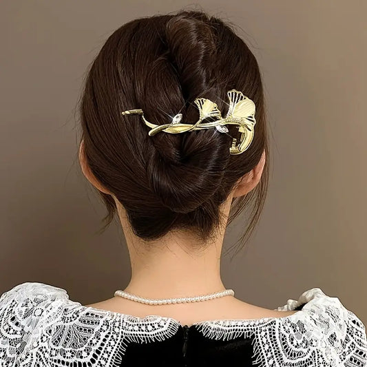 Light Luxury Cat's Eye Ginkgo Leaf Hair Clip