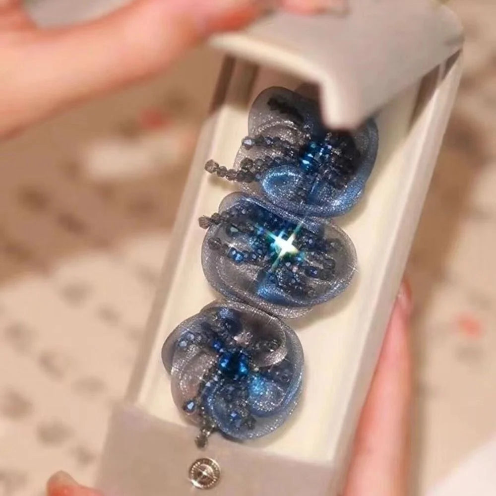 Elegant Blue Crystal Flower Hair Bun Maker