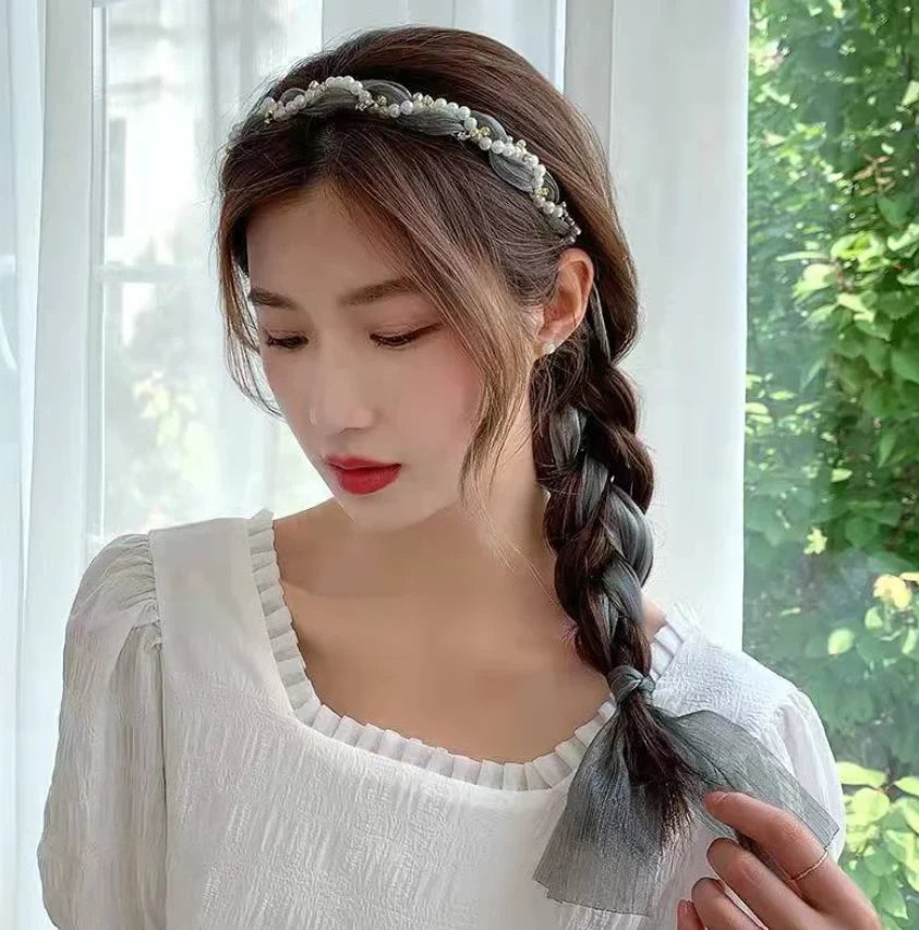 Elegant Floral Ribbon Bowknot With Pearl Hair Band